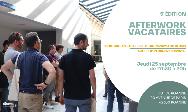 La 5e édition Afterwork vacataires aura lieu le jeudi 25 septembre de 17h30 à 20h !